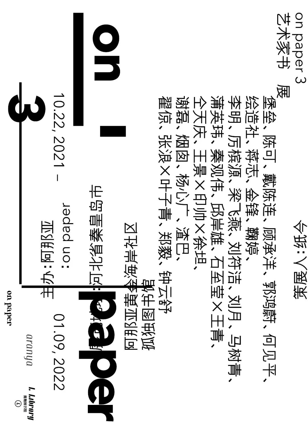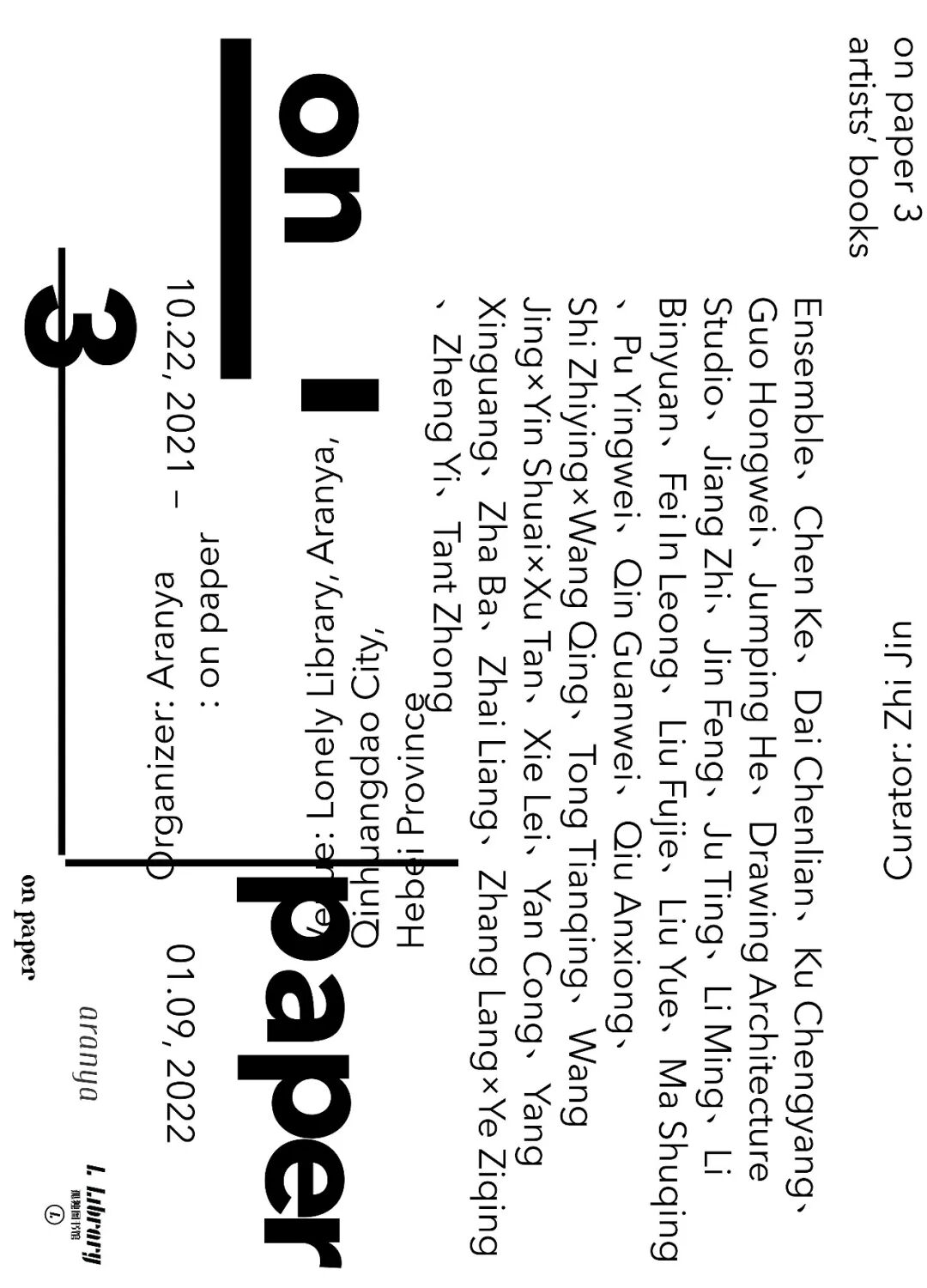 尽管我们一直在观察艺术家书在中国的发展,并在过去的四年内作为实践者与多位中国艺术家合作创作艺术家书,但我们在今天仍然无法给出一个精简、单一的艺术家书定义。就像是绘画已经跳脱出了颜料与画布的传统框架一样,艺术家书也并不囿于艺术或书的传统范畴,不仅运作于这两个大文化领域的交汇处,而是兀自在视觉文化、物质文化、数码文化、图像、文学、影像及行为之内及之外氤氲地弥漫。换句话说,艺术家书充分且完整地挑战了文化艺术的传统分类学规训,并在越来越多中国艺术家的实践体系中以让人兴奋的方式发展、演变。我们希望通过30个艺术家及小组的优异作品与观众一同思考艺术家书的多样定义,以及在中国当代文化艺术语境中知识生产、审美发展等重要工作尚未被发掘的潜能。在今天,去看书是适时且重要的日常实践。on paper和阿那亚及孤独图书馆联合举办的第三届on paper艺术家书展览检视多个艺术家及小组以各自深入、顽固、戏谑或饱含批判性的方式制作的艺术家书,尝试让这种独特的、流动的艺术形式从门类学的狭隘意识中溢出,汹涌地或温柔地流淌至传统形式的书之中去,流淌至宽泛的视觉文化洋流之中去,去对我们的日常生活及审美施加潜移默化的影响。展期:10.22, 2021 – 01.09, 2022