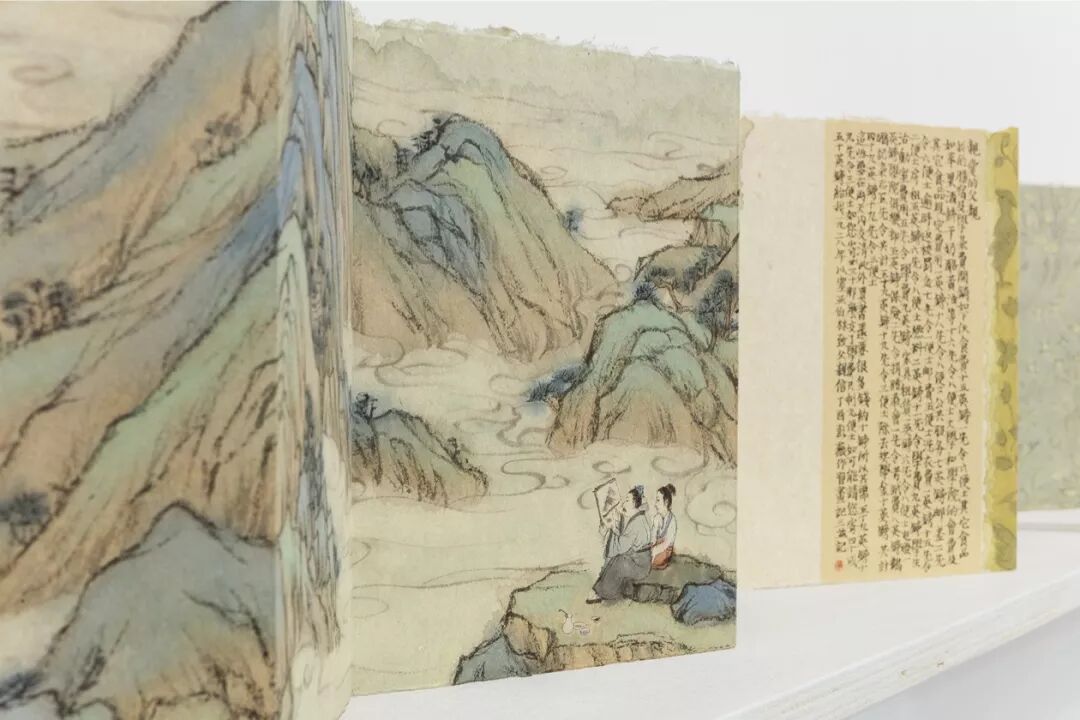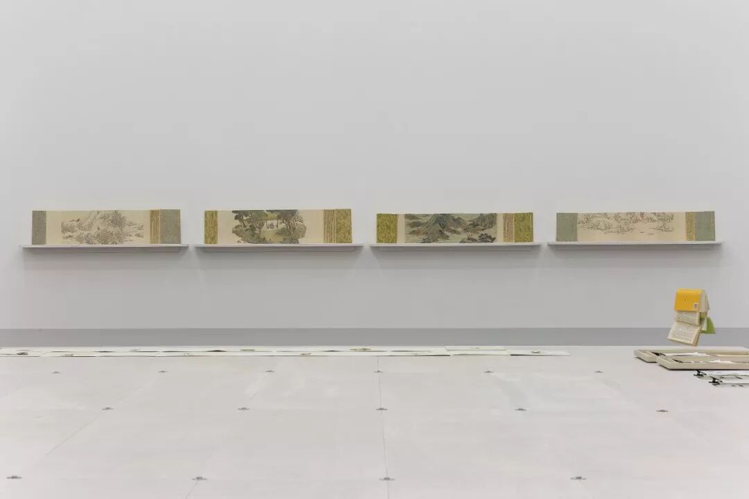 彭薇以古山水画的卷轴与册页为灵感创造《遥远的信件》系列作品。这些卷轴与册页的手绘装置呈现了“再现”与“复制”的视觉错位与暧昧关系。