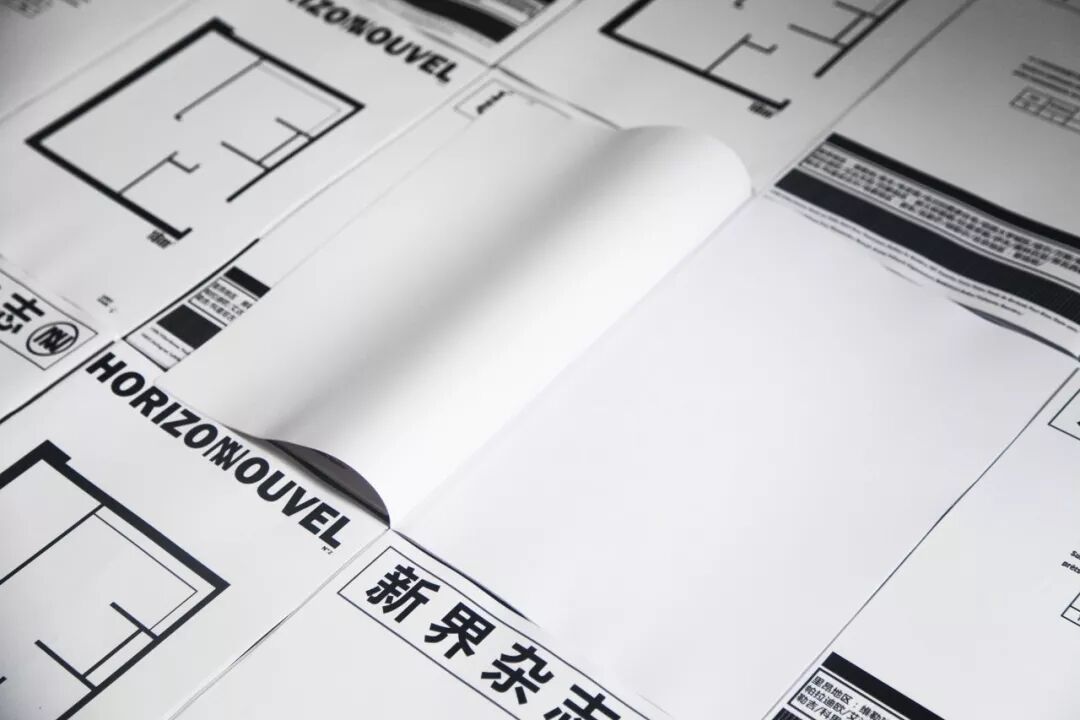 此次展览的作品是《新界杂志》的第三期。杂志内容由7张空白纸张构成,而这些白纸所具有的“面积”则以十比一的比例尺代表了法国民众申请住房补助所要求的最低居住面积。“杂志”变为了一份测量生存状况的标尺,而读者目光在杂志上的游移则象征着对居住在这些最低保障中的人群生活的想象。
