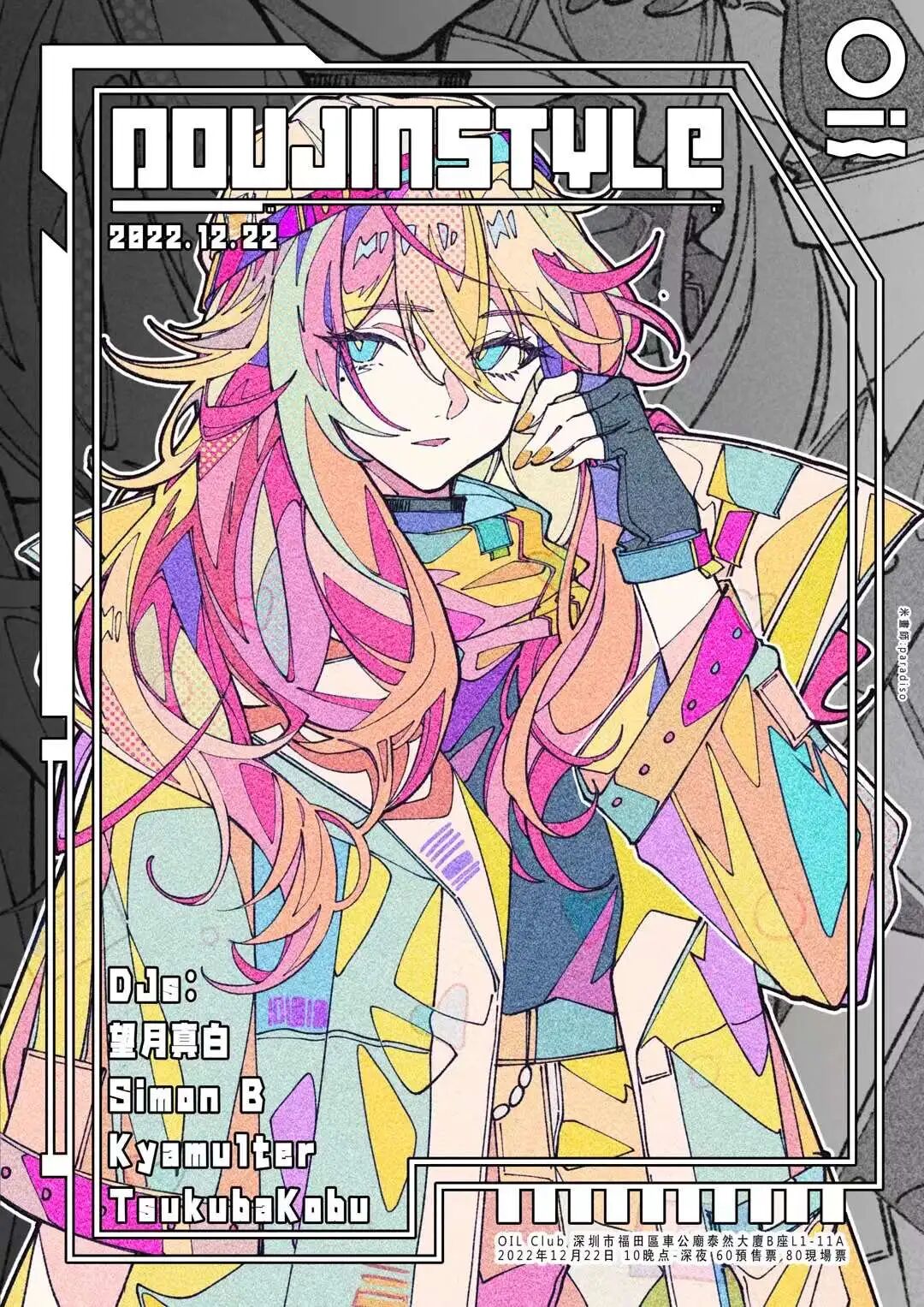 生肖属兔,长的像猫,音乐打虎。出身西北半球神秘地下俱乐部Club Knowless的驻场DJ x1aoy3作为广州地下音乐场景的新面孔,渴望用混沌又有序的融合音乐打破流动与坚固的二元对立,致力于让每个置身舞池的朋友时刻准备着,边界破裂,幻化无形。