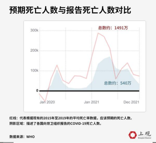 5月初,世卫组织的一项研究报告,揭示了2020年1月1日至2021年12月31日期间,相比没有大流行病的两年时间段,全世界超额死亡1490万人。