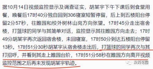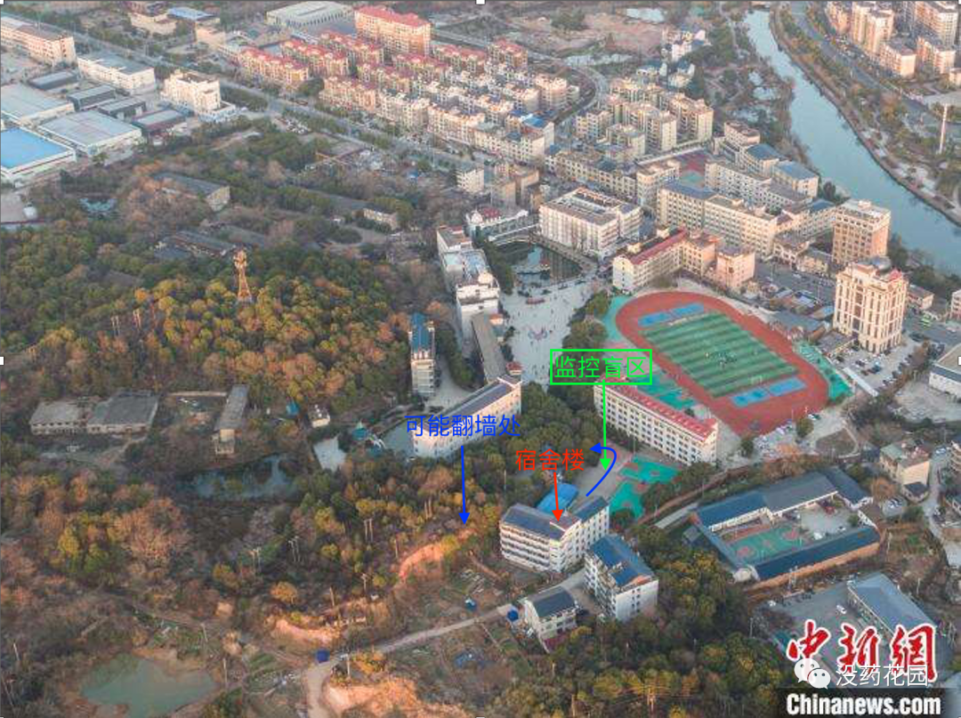 胡鑫宇如何躲开那么多监控?我最早关注到这个案子时,是看到网络上在传,一个在校生从一个满是监控的封闭校园中不翼而飞。许多人说“太奇怪了”,“好神秘啊”。但当我多搜了几篇报道,才发现这说法是不准确的。江西上饶市下面的铅山县致远中学,是一所封闭式高中。15岁的胡鑫宇正在该所中学读高一,也在校住宿,2022年9月刚入学。在2022年10月14日傍晚,胡鑫宇和同学一起在食堂吃了晚饭,回到宿舍,又于17:51独自离开宿舍。他在18:20有晚读课,而从宿舍楼到教学楼只有100多米距离。他本应该在6:05就到达教室,但班主任发现他没有出现,立刻开始找人。学校没能找到他,在晚上11点多打电话通知了他在外地打工的家人。学校有119个监控,但因为校园面积太大了,还是存在许多盲区。譬如,走出宿舍不远就有一片户外的监控盲区,而胡鑫宇正是走入这样一片监控盲区,再也没有走出来。如果这个监控盲区是个密室,那确实很离奇,但问题它并不是——它可以通向其他地方。他消失的盲区里有一个台阶可以通往小山包上一个叫睢园的小公园,台阶尽头是2米左右高围墙,可以翻出去。据学校师生和周边居民反映,平日里就有学生从睢园的围墙出入。那里并无监控。据报道,学校被大约1000米的高墙围着,本案发生后,才在墙上更换了铁丝网,修补了缺漏,增设了更多监控。其他细节也支撑胡鑫宇翻墙出去的假设。据媒体报道和发布会,国庆节前,胡鑫宇和同学聊天时曾谈论可以从睢园围墙一角翻越出校等。10月12日、13日,胡某宇曾多次到宿舍楼三楼阳台观望睢园及校外树林山岗方向。
