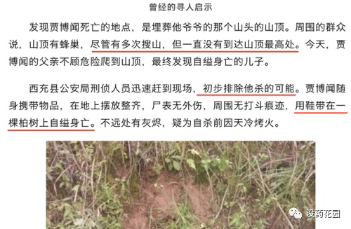 自缢尸体可以多久不掉落?大家都知道,人的骨骼是一块块的,靠软骨、韧带、肌肉、筋膜等等连接,如果这些部分全都腐败完,头颅应当会和身体脱离。但是很多时候,遗体处于户外通风的环境中,在垂挂的状态下,会迅速蒸发水分,血液往下流,颈部的肌肉、软骨、皮肤等不会完全腐败。而根据发布会,本案遗体的皮肤皮革样化。再加上人死亡后,随着占体重大部分的水分、血液、肌肉流失,身体重量会变得很轻很轻,重力没那么大。2020年10月10日,四川西充晋城中学39岁的化学老师贾博闻坐车到了山脚下,独自上山失踪,周围民众组织多次大规模搜山,都没有发现他的踪影。半个月后,贾博闻的父亲再次独自进山,发现儿子用鞋带在一棵柏树上自缢身亡。那为什么之前搜山没发现呢?原来当时村民知道山顶有蜂巢,没有搜山的最高处,而恰好他就在那自尽。