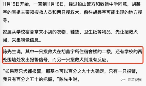 为什么嗅觉犬也失灵?虽然搜救方都承认当时漏掉了那个位置,但有些人还是不信,觉得之前怎么会连狗都没闻到遗体呢?肯定是新近抛尸在那的。根据《南方都市报》,搜救队队长李晨认为大家对搜救犬的认识有误区。它们要满足特定条件才能起作用,譬如在三天内搜索,这个地方不能下雨,不能有其他人走过、气味混合……目前已知11月15-18日从云南来的搜救犬、寻尸犬并没有进入粮库大院搜寻。而后来警方进去的四次寻找中,也没有带警犬进入大院。遗体位于5米多高、厚厚的红石墙体之内,如果搜救犬、警犬没进过大院,只是在外面金鸡山上跑,自然不可能在这么远距离闻到气味。至于大院内的普通狗,并没有受到这样的嗅觉训练。胡鑫宇离地四米多吊在半空,且位于9300平方米的树林深处。而大院面积6万多平方米,如果那两条狗平时在人的居住区活动,不往林子附近去,离得这么远,普通狗闻不到也不奇怪。抛尸论太荒诞了,写在小说里都要被读者吐槽“罪犯脑子坏了吗?”假设真有一个罪犯。他这时只要什么都不做,这事就混过去了,毕竟之前都没立案,热度又下降,自杀意外他杀都没有结论,他又何必自己把尸体从藏得好好的地方弄出来?最难破的谋杀案是没有尸体的案子,无法确认死亡,也没有找到其他犯罪线索,立案都没法立。把尸体还回来,以现在法医水平和DNA水平可以找到的线索就很多了。所以,不管哪国罪犯,都是想尽办法要让尸体消失,实在没办法才伪造现场。2023年1月9日以后,金鸡山上又进行过几次大规模搜索。在这个案子成为热点后,校园和金鸡山区域都成为重点搜查区域,人员活动比过去频繁(除了封闭的粮库),这时凶手再外出抛尸,风险极高,难度极大。一路上会白白送上门多少线索:负重脚印,被新增的监控拍到,被村民、警察、搜救志愿者、粮库工作人员、施工工人撞见,一路蹭落腐烂液体和组织,在鞋带上留下触碰DNA……种种都是不可控的风险。再说,经历了100天的腐烂尸体也不可能被这么折腾,早就七零八落了,法医一看就知道不是第一现场。而且这个罪犯或者犯罪集团有什么理由要把已经消失的遗体扛到粮库,冒着被人撞见的风险,想尽办法翻墙进去,把它挂在树上,等着被发现?他(们)不至于傻到以为这样就可以伪造上吊自杀,糊弄所有人吧?