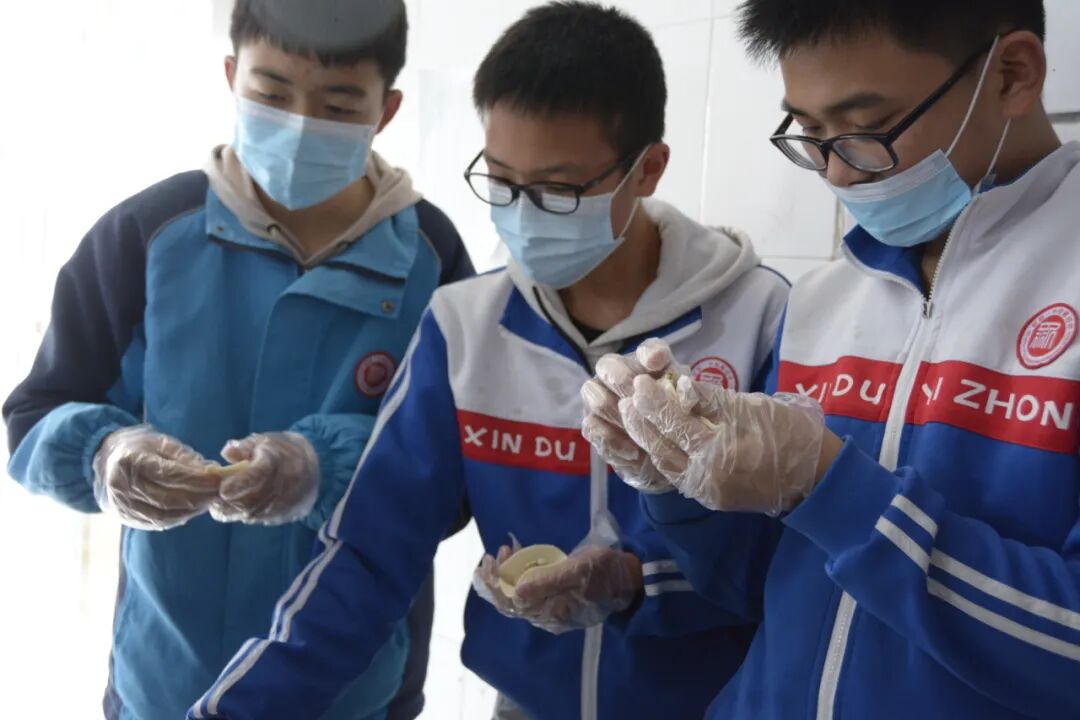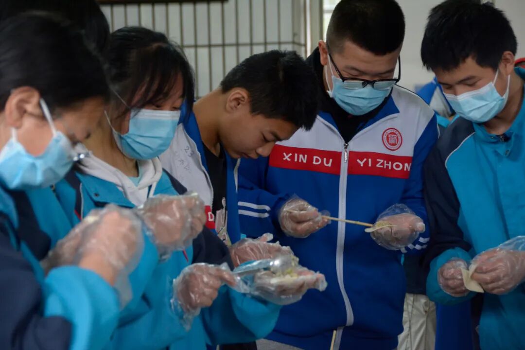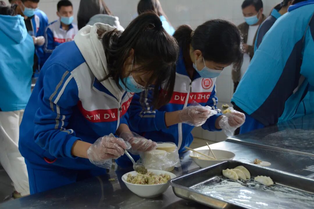 为丰富同学们的周末托管生活,提高学生的动手能力,增强同学们之间的团结互助精神,促进同学们的身心健康成长,4月17日上午,新都一中附属初中九年级师生在学校餐厅举办了“包饺子 连情谊” 周末托管烹饪实践活动。