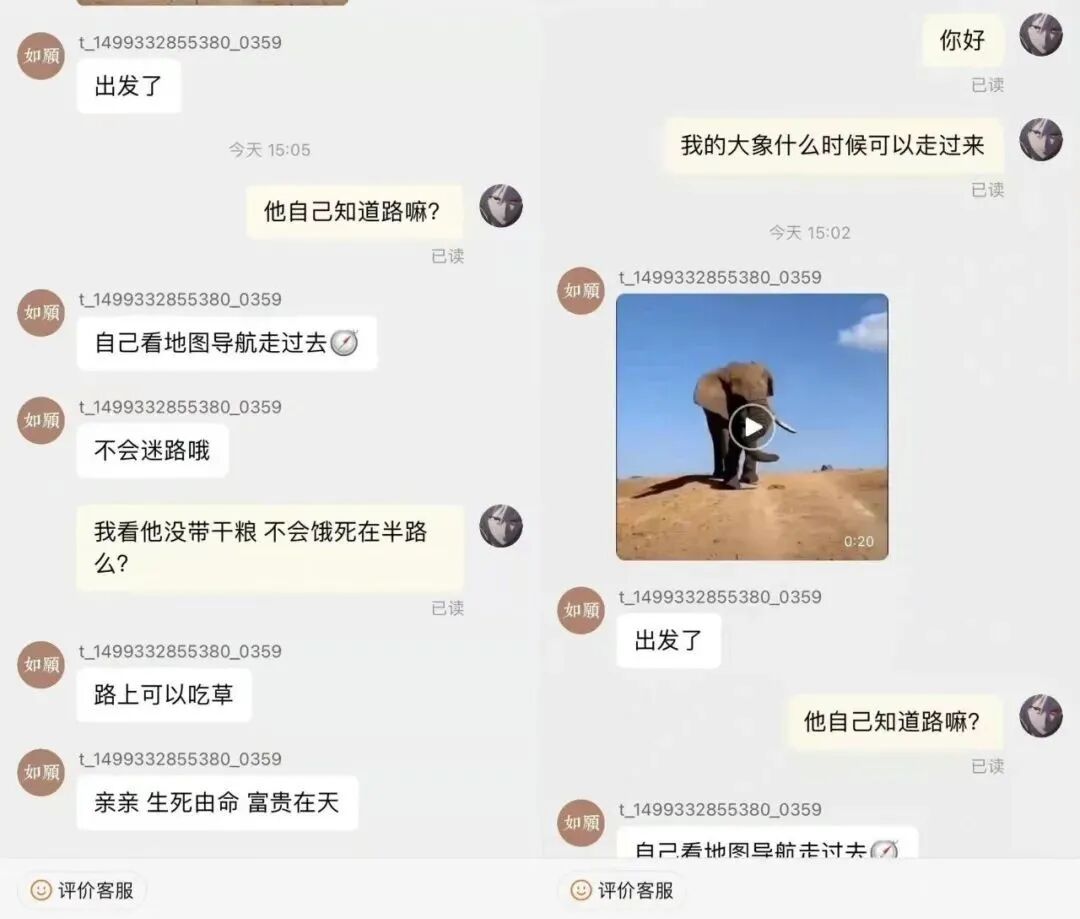 而这位重庆的买家被商家告知:“您的大象已经自己顶开门出去了”。
