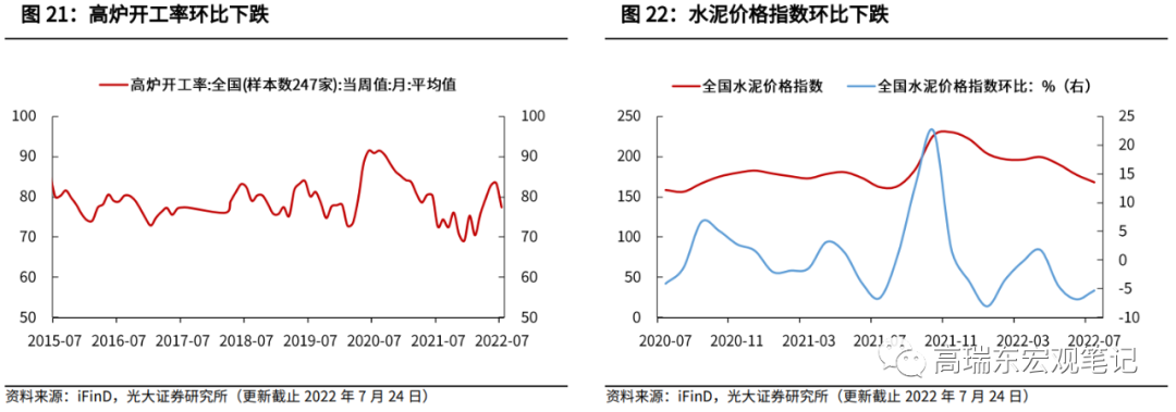 高炉开工率环比下跌。2022年7月以来,高炉开工率为77.37%,较上月降低6.02个百分点,较2021年同期提高4.79个百分点。