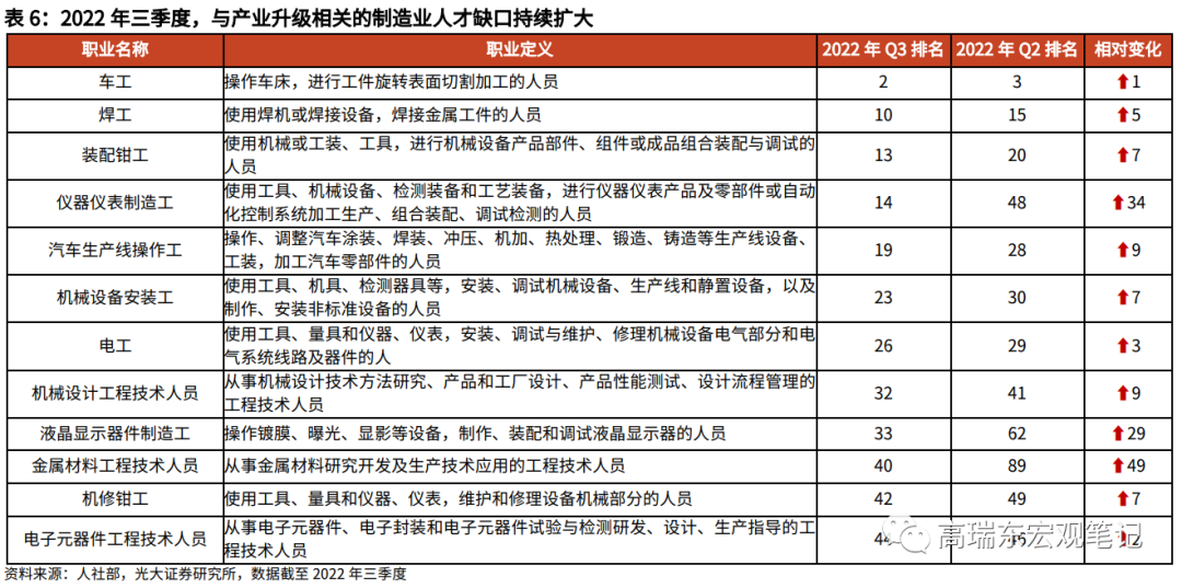 根据人社部最新发布的2022年三季度“最缺工”职业排行榜,与新能源、高端制造等新兴产业密切相关的汽车生产线操作工、仪器仪表制造工、机械设备安装工等职业,缺工程度都出现了明显提升。而通用性较高的车工、焊工等职业,缺工程度则长期位居缺工排行榜前列。