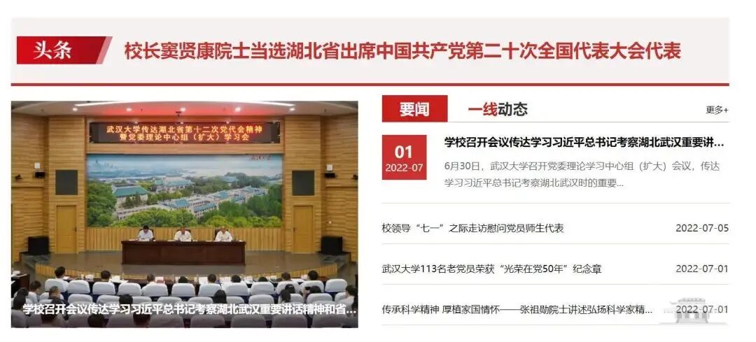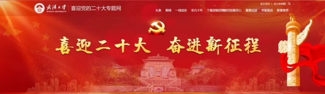 今年下半年将召开党的二十大,这是党和国家政治生活中的一件大事。为深入学习贯彻习近平总书记关于宣传思想工作的重要论述,坚持“两个确立”、做到“两个维护”,突出迎接和学习宣传贯彻党的二十大工作主线,大力营造团结奋进、昂扬向上的良好舆论氛围,根据学校党委部署,7月6日,由学校宣传部牵头建设的武汉大学“喜迎党的二十大”专题网站正式上线运行。