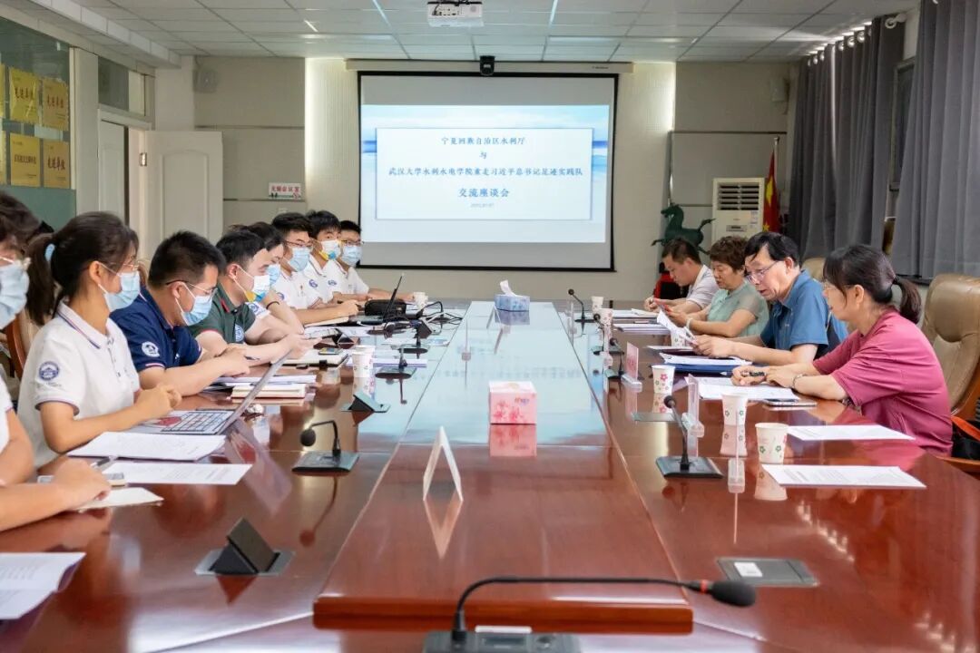 7月7日下午,宁夏回族自治区水利厅与武汉大学水利水电学院实践队在宁夏水利科学研究院举行交流座谈会,水利厅赵东辉调研员主持座谈会。座谈会上,赵东辉简要介绍了宁夏水利事业与宁夏回族自治区水利厅的有关情况,并对实践队的到来表示热烈欢迎;实践队负责人介绍了实践团队的基本情况、前期所开展的工作以及取得的成果。与会领导分别围绕宁夏水利科研情况、宁夏水文水资源情况、宁夏引黄灌区管理情况、宁夏水土保持综合治理情况、宁夏水利史等内容向同学们进行了详实的介绍。赵东辉调研员与宁夏水利科学研究院副院长李海霞还重点介绍了宁夏建设黄河流域生态保护和高质量发展先行区的有关情况,认为“水”是先行区建设的重要组成部分,并从水资源节约集约利用、水权改革、水环境治理、河湖管理、智慧水利、水土保持、城乡供水、现代化生态灌区建设和水网建设等方面进行了介绍。与会领导还介绍了黄河宁夏段生态环境保护取得的成效,他们谈到:党的十八大以来,宁夏加大水土流失综合治理力度,实现了全区水土流失面积强度“双下降”,森林覆盖率不断提高,水质质量持续提升,全区节水型社会建设取得了积极进展。