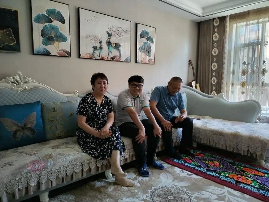达尔汉·毛肯在尼力娜尔·阿依恒家中家访