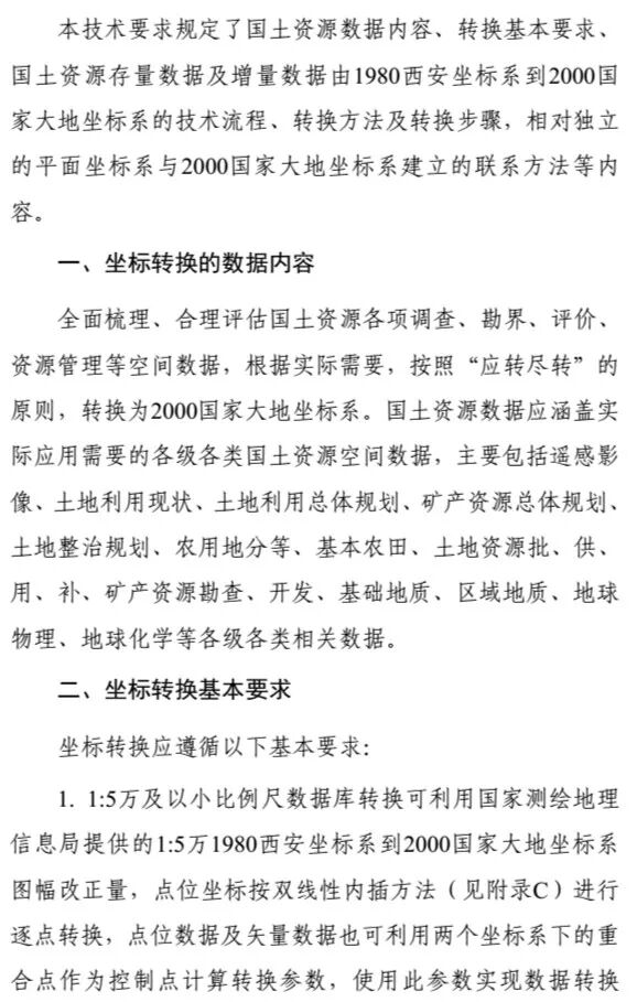 按照国务院关于推广使用2000国家大地坐标系的有关要求,之前国土资源部(现自然资源部)确定,2018年6月底前完成全系统各类国土资源空间数据向2000国家大地坐标系转换,2018年7月1日起全面使用2000国家大地坐标系。