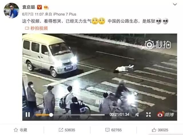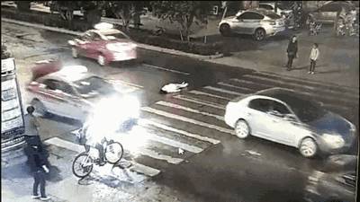 但从被撞到二次碾压的1分钟内,10余辆途经车辆和约20名经过的行人,无一人上前施救。
