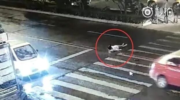年轻女子被撞后躺在地上没有起身,但从视频可以看到,她抬起头试图起来。