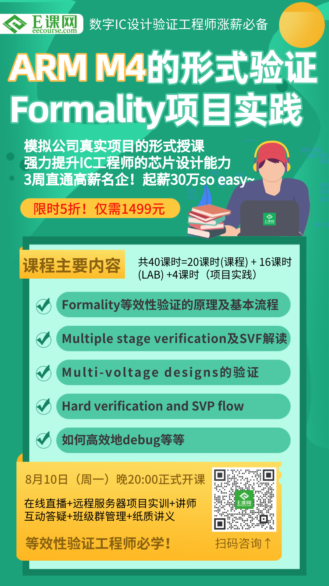 E课网《ARM Cortex M4的FM形式验证策略和实现方法》课程限时5折优惠!原价2980元,现仅需1499元即可参与学习!