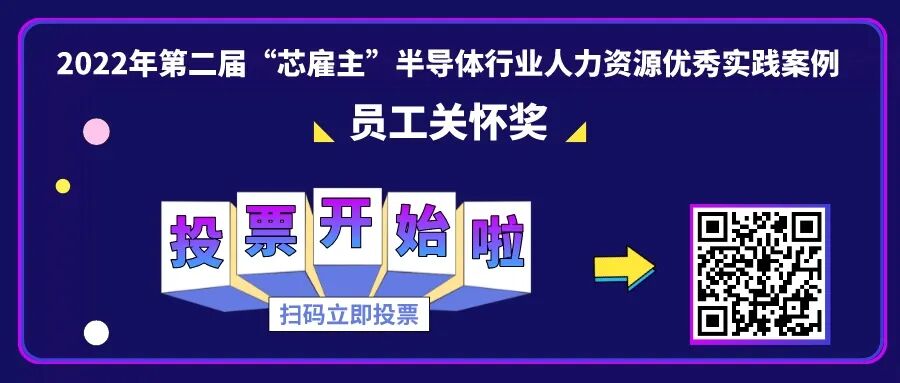 “2022年第二届“芯雇主”半导体行业人力资源优秀实践案例正式进入大众评选阶段,欢迎各位行业人士为企业投票,为您喜欢的优质芯雇主打call!
