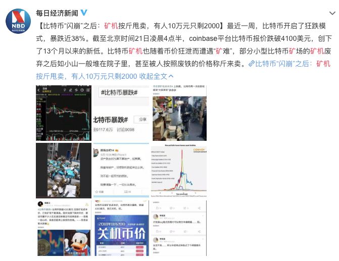 这几天,市场价格再次暴跌,很多“矿机按斤甩卖”的新闻刷爆了朋友圈: