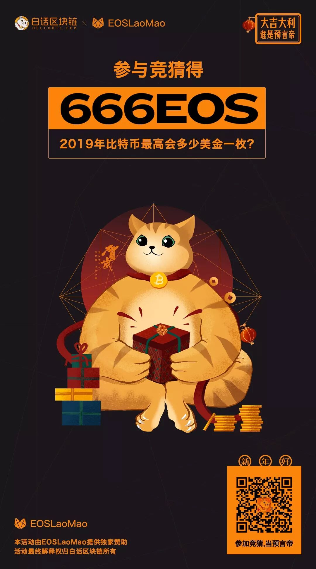 2、中奖者产生方式:根据竞猜记录,选取最接近最高价数字的竞猜者,获得666EOS全额奖励。