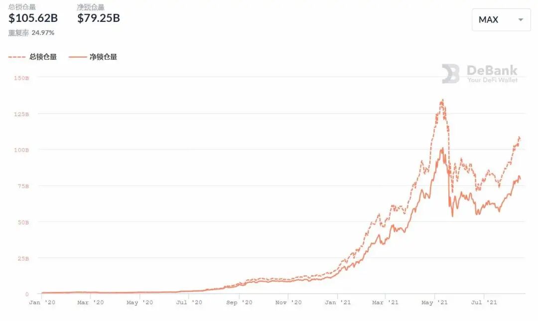 虽然4月份以来经历了三个月左右近乎腰斩的体量回撤,但截至8月15日,TVL已迅速回暖至1000亿美元上方,几乎收复失地。
