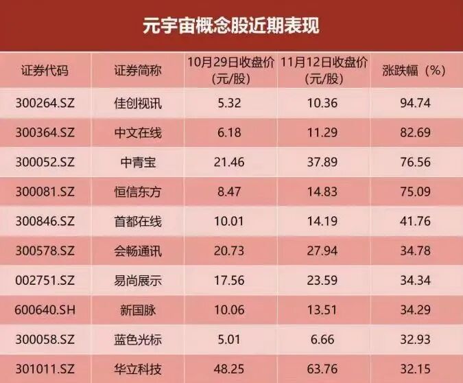 11月9日的元宇宙概念股爆拉,从侧面反映出看好元宇宙的投资者越来越多,虚拟世界与现实世界互通并形成闭环经济平台的构想,或许将成为数字科技在应用方面的终极形态。