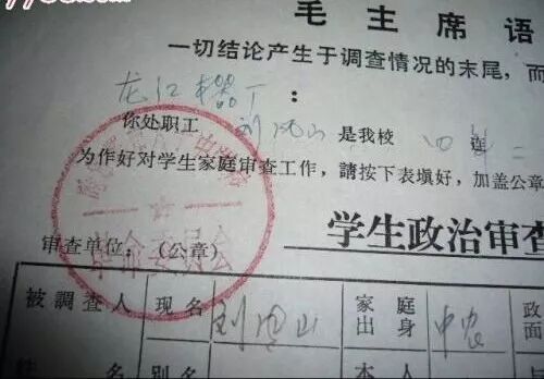 “学生政审”使许多学生被打入另册