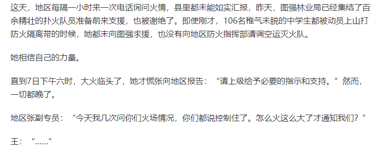 更关键的是,这场灾难并不是不可抗拒的天灾,也不是由雷击树木导致的,而是一场人祸。