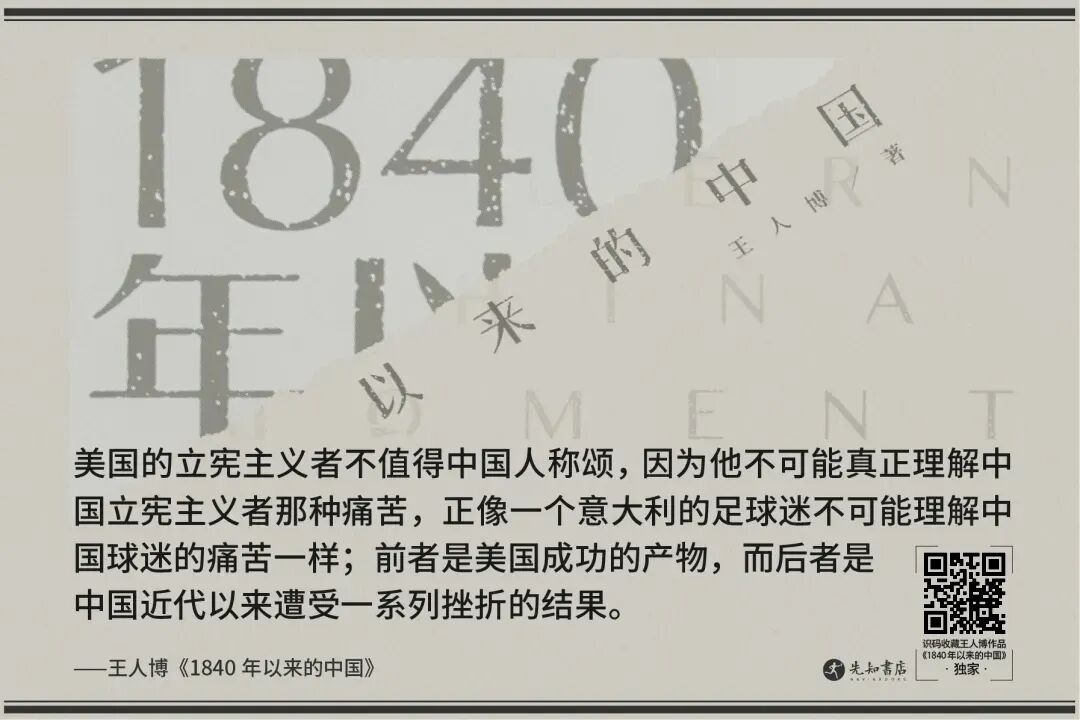 但是,将民国的失败归咎于“政治军事因素”这个结果,却不免流于浮面。王人博教授在《1840年来的中国》中,以一个哲学家的洞察,深刻剖析了当时中国最具远见卓识的思潮,并以其中几位代表性学者的观点,分别阐释了中国转型的“路径依赖”。由于内容过于丰富,这里暂时列举两位声名远播、著作等身,观点看起来却“尖锐对立”的学者。