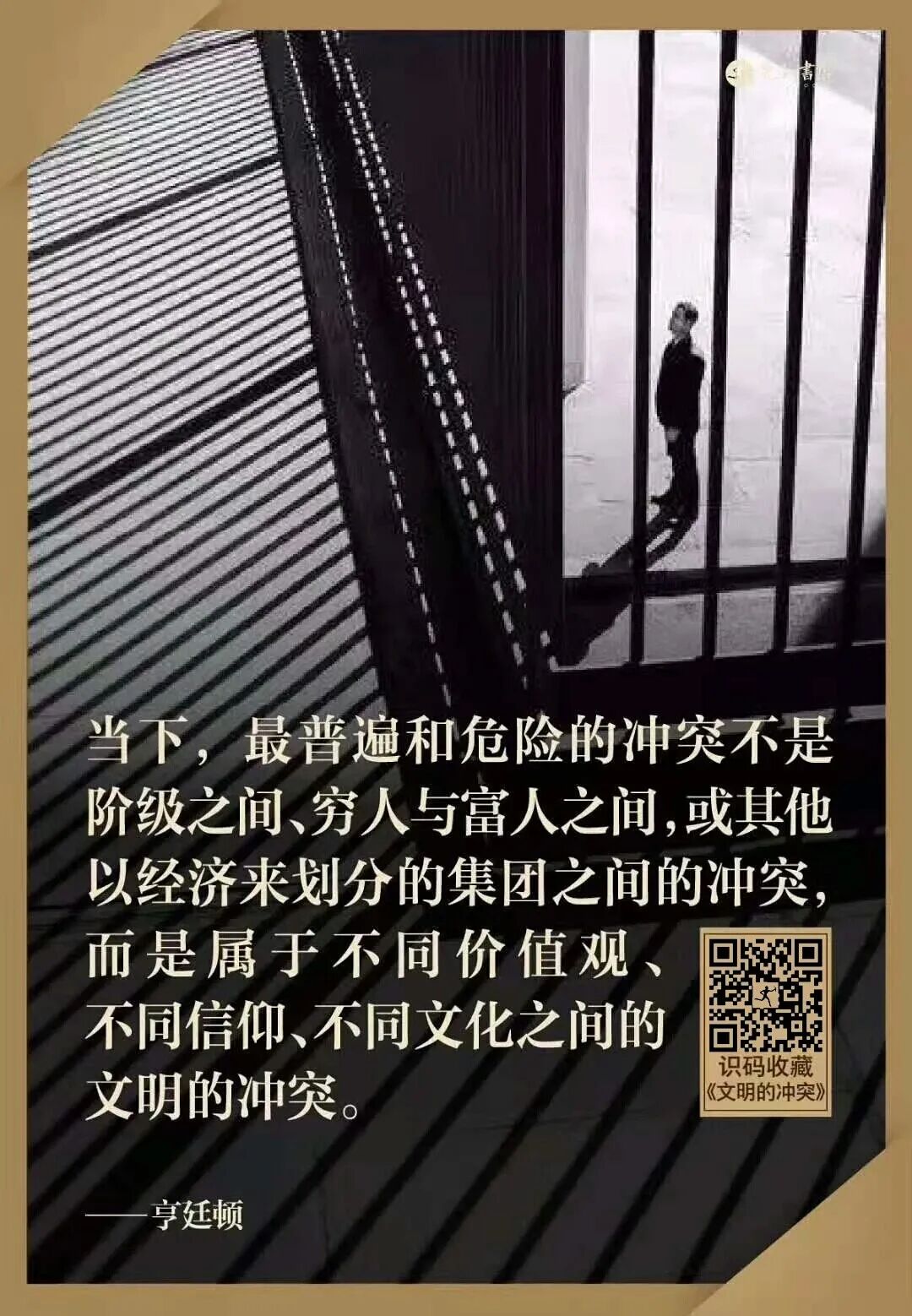 正如亨廷顿所说:“当下,最普遍、最重要和最危险的冲突,是属于不同价值观、不同信仰、不同文化之间的文明的冲突。”