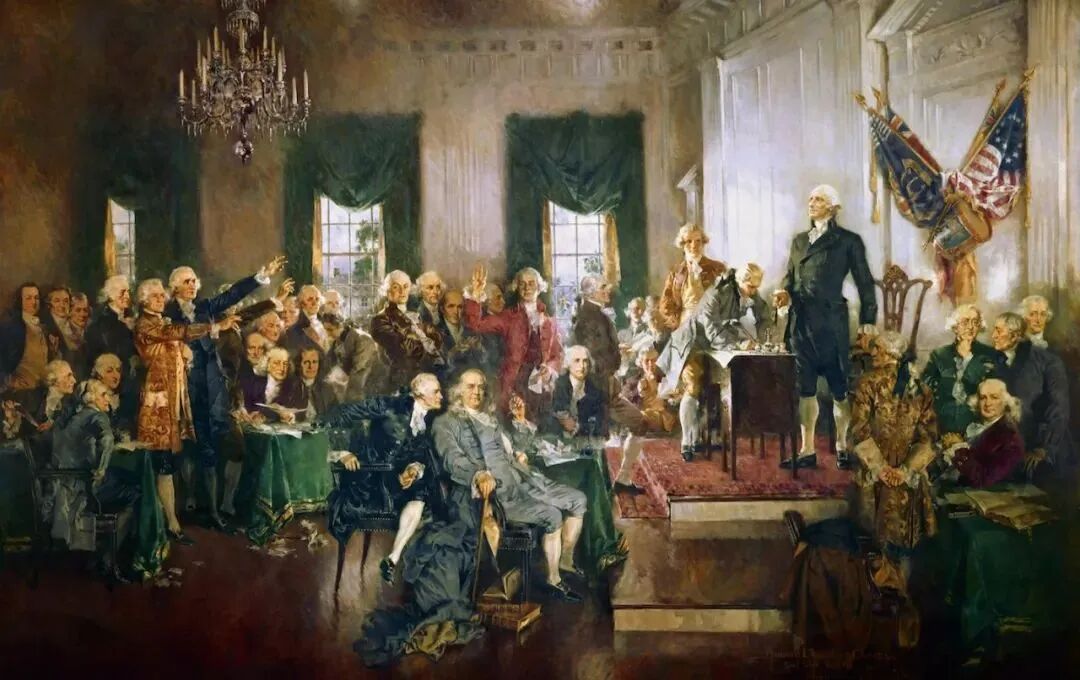 1787年夏,美国费城议会厅里,五十五位代表,来自十二个立场各异的州,代表不同的利益群体,激辩四个多月,有人出言威胁,有人离场抗议,连会议主席华盛顿都写道:“我真懊悔跟这档子事沾上关系。”