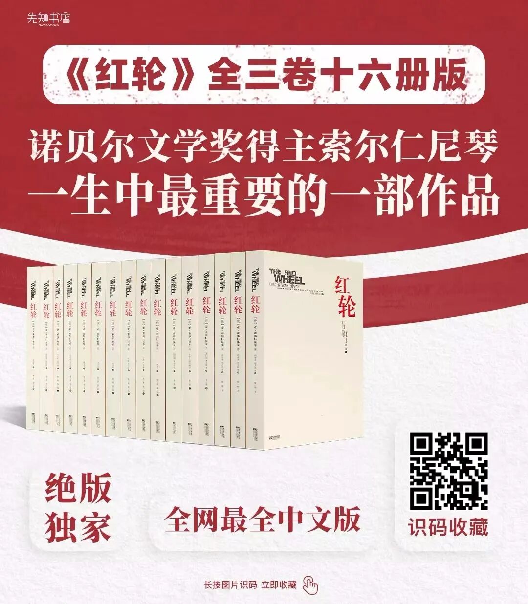 尽管怀有偏见的人民和政党,被灌输以种种思想和信仰,但我却相信,在人类的这些烦恼的时刻里,世界文学有帮助人类的力量,有看清人类的真相的力量。世界文学有力量将浓缩了的经验从一个国家传送到另一个国家,这样我们也就不再分裂和惶惑,不同的价值标准也就有可能得以取得一致,一个国家能正确而概括地学习另一个国家真正的历史,这样一来它也就得以不再重复那些相同的残酷的错误。我们不要忘记,暴力并不是孤零零地生存的,而且它也不能够孤零零地生存:它必然与虚假交织在一起。在它们之间有着最亲密的、最深刻的自然结合。暴力在虚假中找到了它的唯一的避难所,虚假在暴力中找到了它的唯一的支持。凡是曾经把暴力当作他的方式来欢呼的人,就必然无情地把虚假选作他的原则。暴力并非总是公开使喉咙窒息,也并不是必然使喉咙窒息,更为经常的是,它只要求其臣民发誓忠于虚假,只要求其臣民在虚假上共谋。而一个纯朴而又勇敢的人,所采取的简单的一步就是不参与虚假,就是不支持虚假的行动!在与虚假进行斗争中,文学过去总是取得胜利,而且现在也总是取得胜利!在这个世界上虚假能够抵御许多东西,但就是不切实际能抵御文学。而且一旦虚假被驱散,那么赤裸裸的暴力就会立即显露出它的一切丑恶——暴力也将变得老朽、衰亡。我的朋友们,我之所以相信,我们能够在世界的白热的时刻帮助世界,其原因也就在此。而这并不是靠着为不拥有武器制造借口,不是靠着使我们自己沉溺于一种轻浮的生活——而是靠的是参战!在俄语中,有关真理的格言是被人们所深爱的,它们稳定地、有时又是引人注目地表达了俄罗斯民族严酷的经验,那就是:正因为如此,在这个既违反质量守恒,又违反能量守恒原理的怪念头上,我为我本人的行动,也为我对整个世界的作家的呼吁找到了基础。景凯旋老师曾说:“如果有人问我,谁是二十世纪最伟大的作家,我会毫不迟疑地回答:索尔仁尼琴。”可以说,索翁的创作是记忆的文学,或见证的文学。为了这一点,为了那些生者和死者,索氏决心把看到与想到的一切写出来,以强烈的使命感创作出一部部传世之作。而索翁交出的成果正是两部不朽的名著——前者即流亡前所写,令索尔仁尼琴名扬全球的《古拉格群岛》;而后者则为他流亡期间写就,倾注了一生思考与生命之火的作品《红轮》。就重要性而言,索尔仁尼琴自己也曾多次表示,自己最重要的作品并非《群岛》,而是这部《红轮》。为此,先知书店特别推荐索尔仁尼琴一生最重要的一部作品——《红轮》,这套书:●“20世纪俄罗斯版的史记”:本书对“苏联这一体制何以产生在这片土地上”进行了深刻的反思,因此被称为“20世纪俄罗斯版的史记”。然而,对于今天的中国人来说,其史学价值和文学价值,比史记更重要,更直接。因为,它描写的那段历史距今并不遥远,而我们依然生活他的延长线上。●题材特殊:苏联的崛起与崩溃,堪称整个二十世纪最重要的历史事件,其中有无数的经验教训有待反思。但尽管读者的需求很大,现实却是类似《红轮》这样深刻的书,无论新、老书的出版和讨论,都已经越来越少。●经典稀缺:《红轮》中文版共出版三卷、16册,但因为目前已经绝版,网上在售的,都是零散的残卷,并且散落在不同的渠道,即便一卷本的二手书都溢价到900元。先知书店联合出版社,经多方努力争取,集齐目前中文最全《红轮》版本(全三卷、16册版),仅剩200套,好书难得,值得珍藏。识别下图二维码,即可购买收藏独家绝版书。![]()
