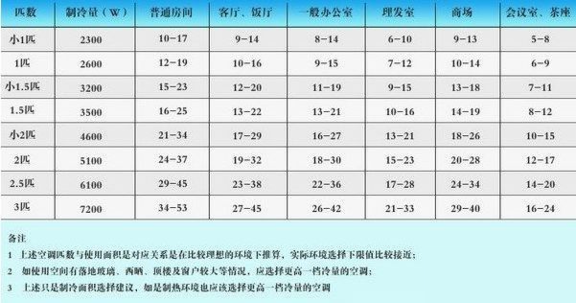 所以,买空调时应关注空调的铭牌制冷量而不是“匹数”,家用空调所需制冷量可按如下方法简单计算: