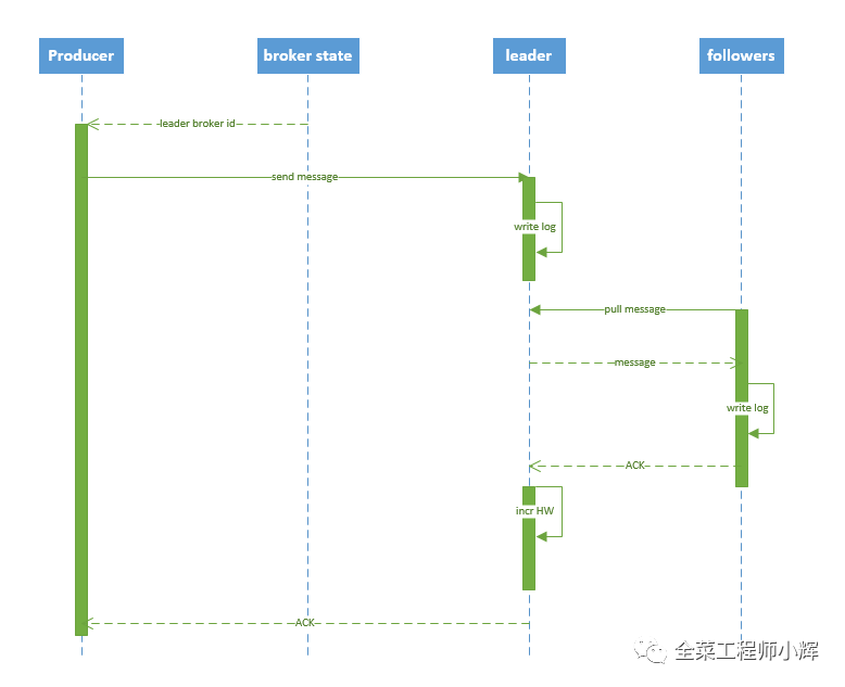 Leader收到所有ISR中的replica的ACK后,增加HW并向Producer发送ACK。