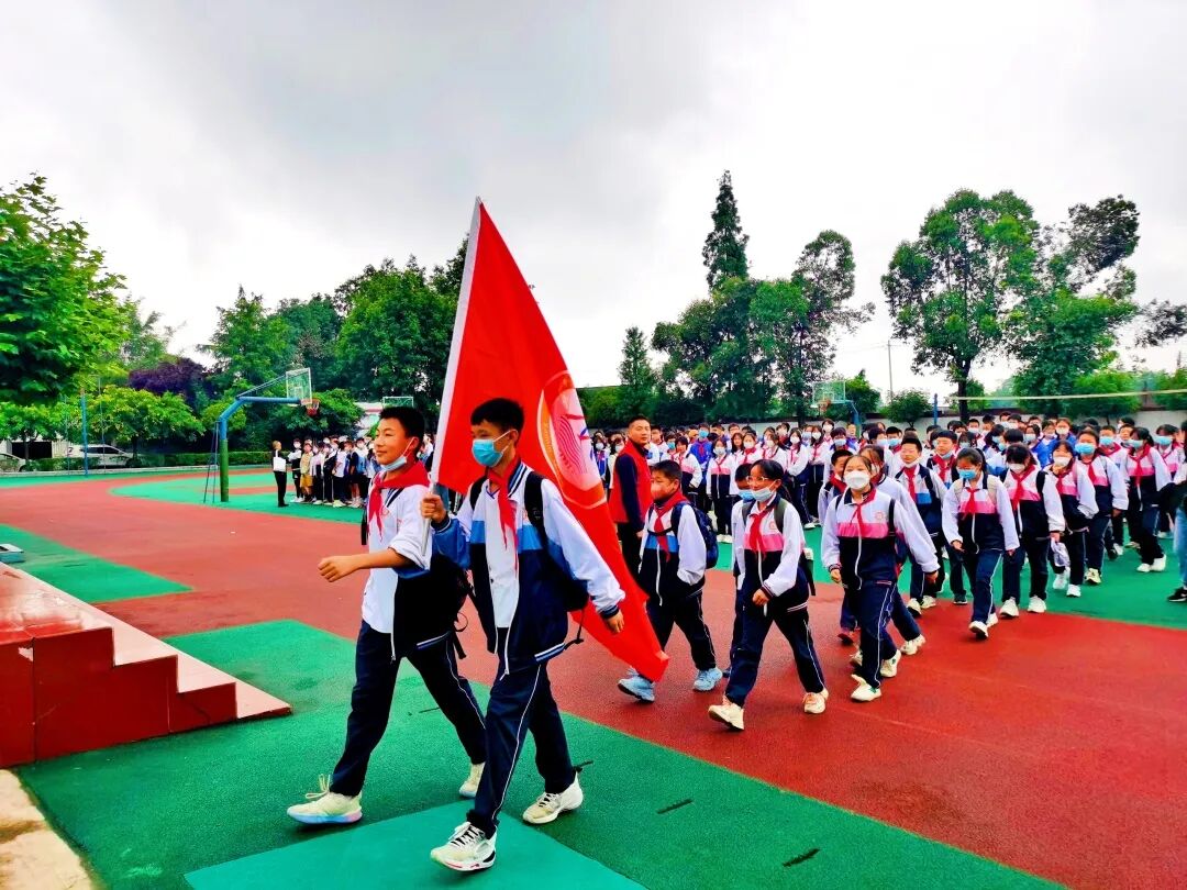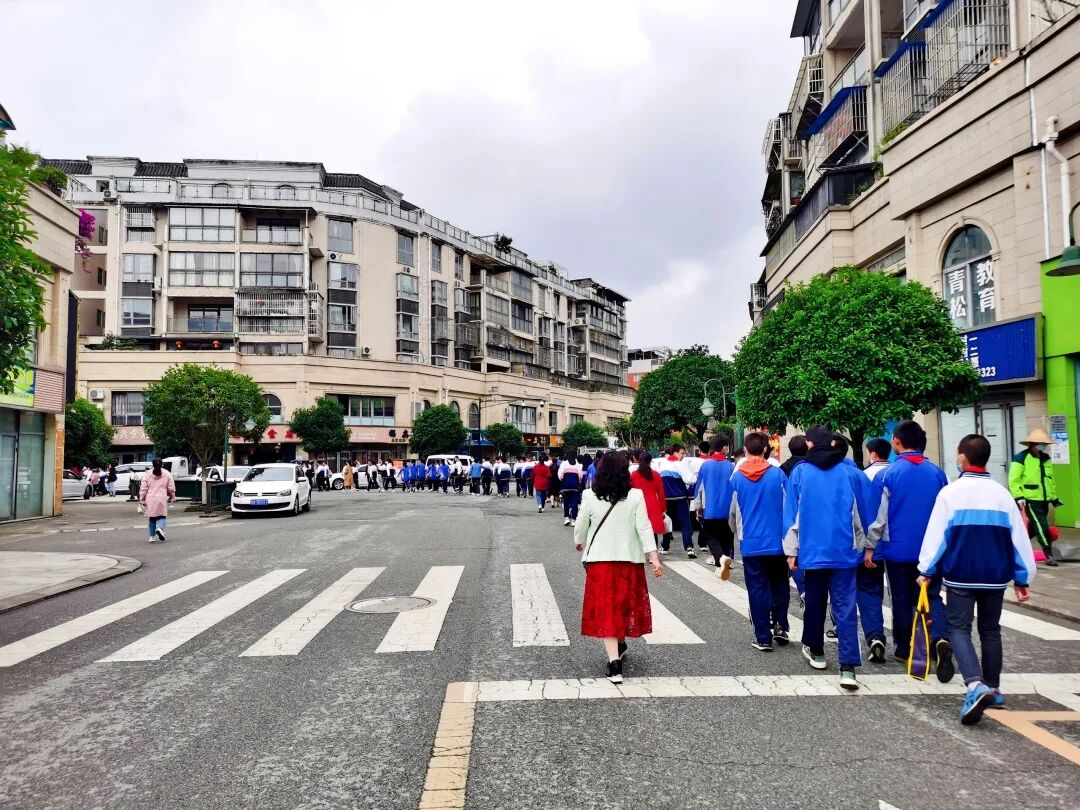 全体师生从学校操场出发,每过一个路口,我们的警察叔叔们,还有教师们都积极主动参与到维持秩序中,确保孩子们安全通行。
