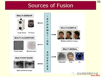 生物特征融合把多种生物特征证据融合在一起,通过多特征会使得个体的验证更加稳固。多种生物特征信息被整合在一起可以提高匹配时的表现、提高了识别种群的规模并且很难被欺骗了。当然这里的信息融合来源可以很多,可以是指纹、人脸、虹膜这样的多模态融合也可以一个人的不同角度图片的融合。