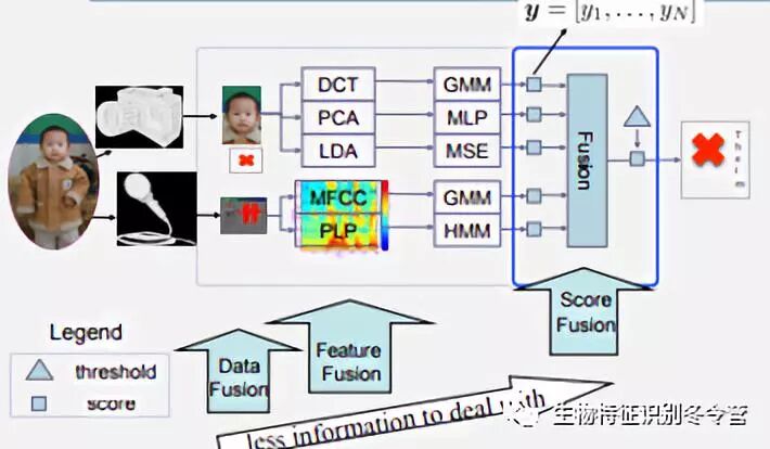 接下来Josef Kittler 教授重点为我们介绍了几种融合方式,其中包括信号、特征、评分和多级决策融合,它们都具有很大的差异性,当使用不同的融合对象以及方法,我们采取不同的融合架构。在融合之前我们需要解决模式识别的一些基础问题如:分类数、生物识别特性、特征维度的大小。Josef Kittler 教授还为我们介绍了生物测定学的基本原理。在分数水平融合时,我们需要解决的关键问题是分数标准化以及生物特征质量对决策过程的影响。在多模态生物特征融合的过程中,可以采用视觉外观和口头外观描述的软生物特征对人重新识别,以下列举了在CNN框架下的一些实验结果,通过多模态生物识别技术,可以使识别性能提高,在环境复杂的情况下也具有良好的效果。