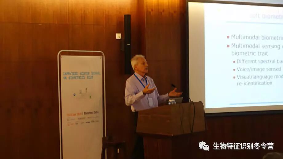 第二场报告由来自英国的Josef Kittler 教授为我们带来,题为Fusion of Multimodal Biometrics。首先,Josef Kittler为我们介绍了不同生物特征的发展,其中包括指纹、虹膜、二维和三维人脸,语音识别等,这些不同的生物特征都有其独特性,我们可以分别使用这些特征进行验证人们的身份,但是通过融合,可以达到特征信息的充分利用,互补其特性,使识别性能大大提高。Josef Kittler 教授为我们讲述了几种不同的特征提取和训练方式:
