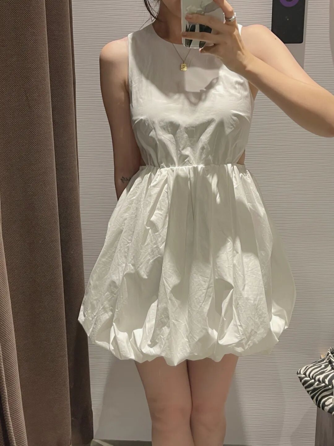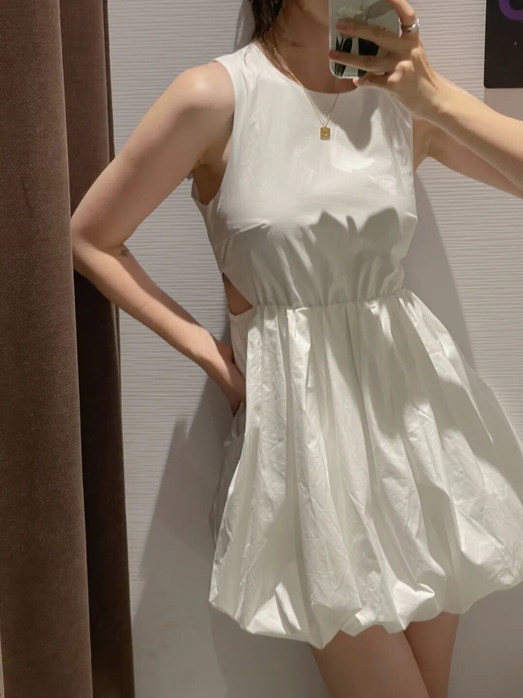 腰侧有镂空,有黑白两个颜色,不过天猫店铺有黑色那款,面料比白色更有垂坠感,很适合小个子穿~