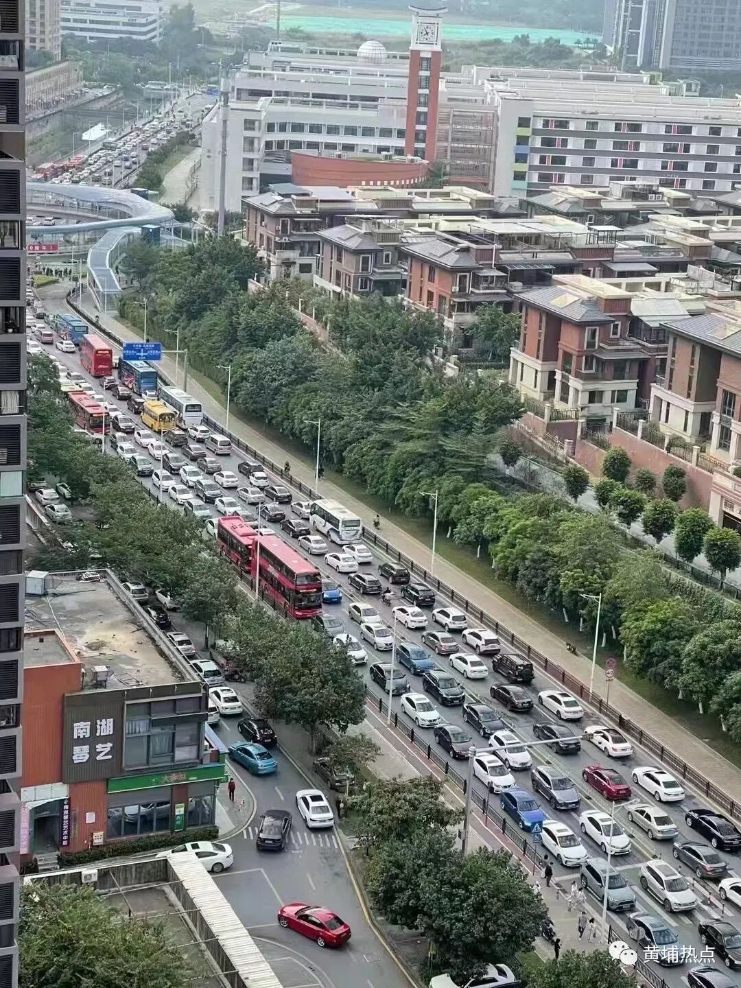 ▲广州市黄埔区云信路高峰期之日常:排长龙+鸣奏曲