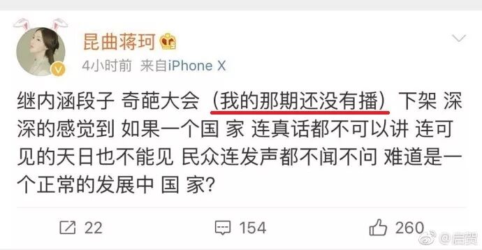 @中华义勇军黄河:你那一期就没有别的平台播出么?看来也不会是什么好节目