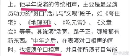 再如其在马三立去世转天所写的《马三立在相声史上的贡献与地位》一文中(http://www.ccmedu.com/bbs_share.aspx?ID=344&boardID=13&bsh_bid=1093414926),