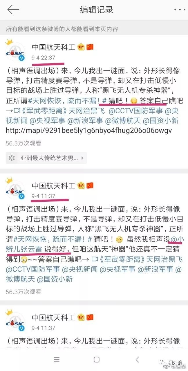 然后,时隔11个小时以后@中国航天科工 偷偷修改微博内容关闭评论,没有声明和道歉,恐怕所在党委还给流量奖金了吧?如意的算盘扒拉的响呀