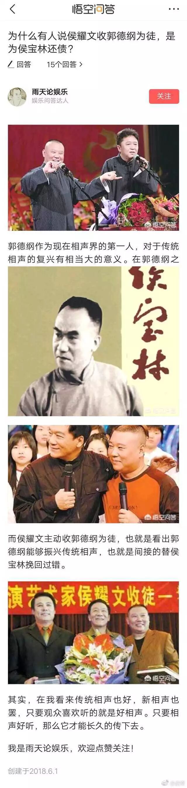 时至今日,历史也被虚无甚至扭曲,竟然有人写了一篇题为《为什么有人说侯耀文收郭德纲为徒,是为侯宝林还债?》