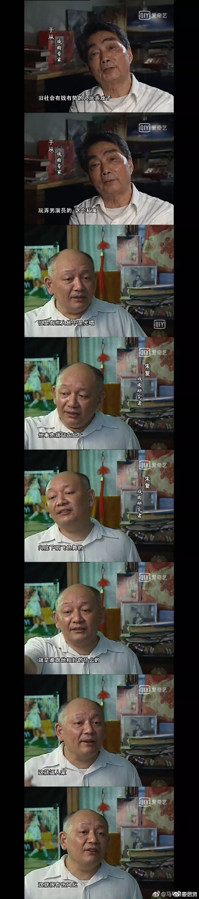这虽然是在纪实片《粉墨春秋》里说的是旧社会京剧艺人的事,当可以推想当时曲艺杂耍艺人,相声艺人的社会地位还不如京剧艺人了。他们就是想摆脱这种被侮辱被歧视的社会地位,才要努力去说有格调的东西,讲说人间正道,而不是屎尿屁。而经过张寿臣、马三立、侯宝林等一大批艺人的努力,艺人从欢喜虫变成了文艺工作者。