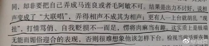 也许有朋友看到这三张截图,以为是在批评当下相声怪象,如低俗的内容,打情骂俏的骚浪贱,京评梆三下锅的叫小番……而实际上这是吴文科同志发表于1994年4月17日《中国文化报》上的《相声的“平面现象”》。而令人觉得十分吊诡的是,当初的乱象造成了受众的反感,而如今的乱象却带火了相声并受到追捧。