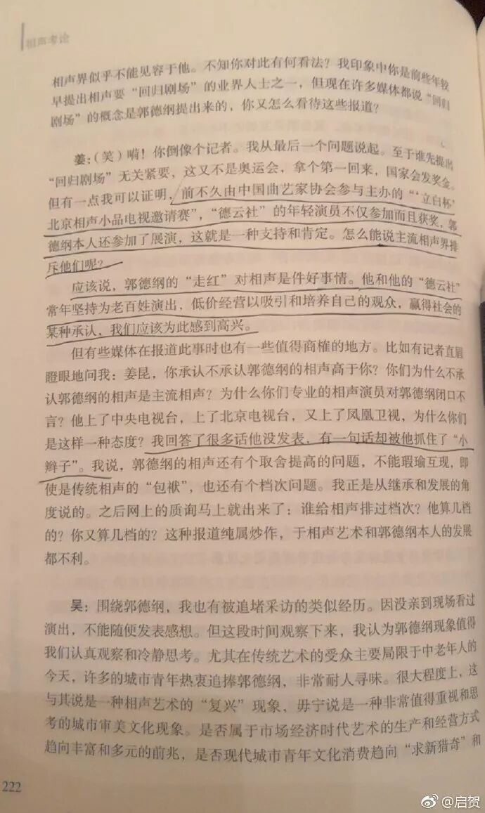 这篇题为《关于相声:一次学术与艺术的对话》文章原载于2006年2月24日《光明日报》,《曲艺》2006年第3期以《正确看待相声现状和郭德纲现象》为题全文发表。当初在郭德纲问题上,确实是一些乃至大部分媒体都是煽风点火断章取义的报道,而如今他们又开始痛批郭德纲低俗,真是比郭德纲还要低俗无耻。就此笔者也写了一篇——警惕:吃白食带饭盒