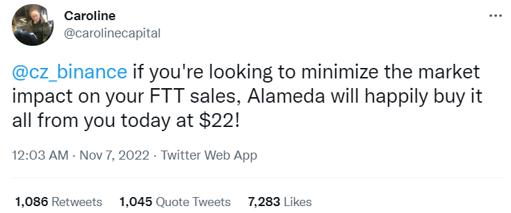 对此,Alameda的CEO Caroline回复称,公司的财务状况稳健。如果CZ想让清仓对二级市场的影响降到最低,她现在非常愿意以22美元的价格回购。