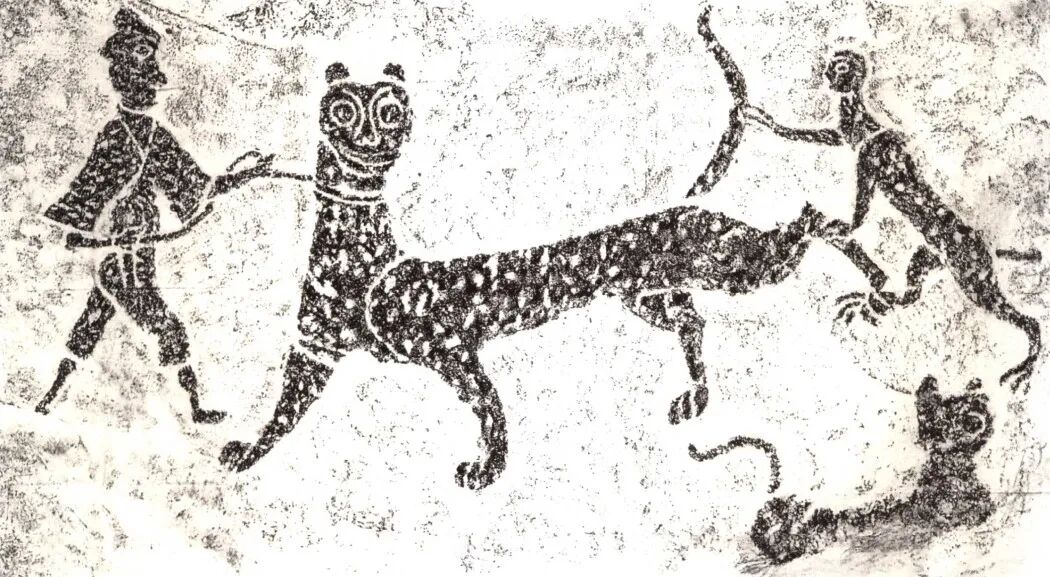 汉画像石“驯虎”,河南南阳唐河冯君孺人墓出土