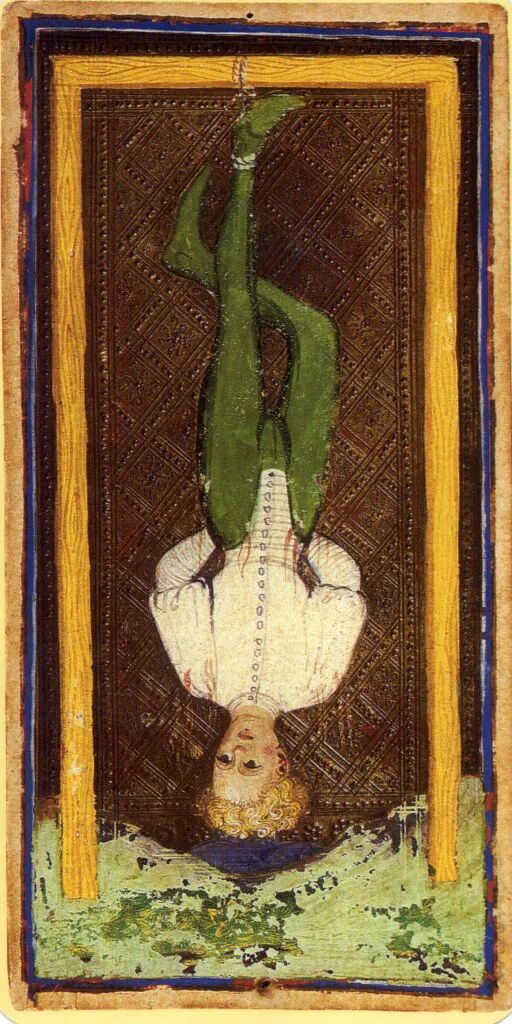 米兰公国维斯康蒂-斯福尔扎塔罗牌的“倒吊人”,约15世纪50年代