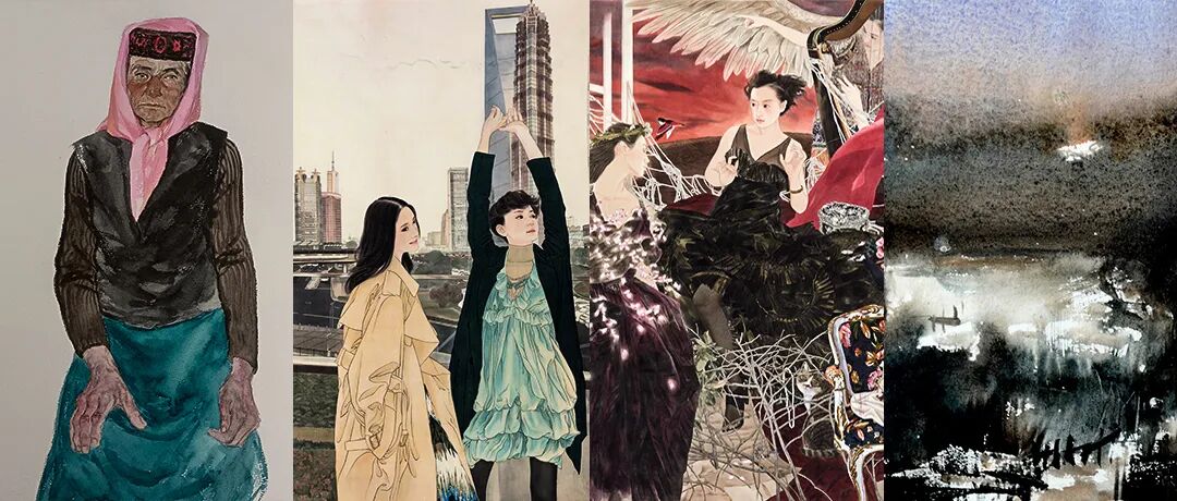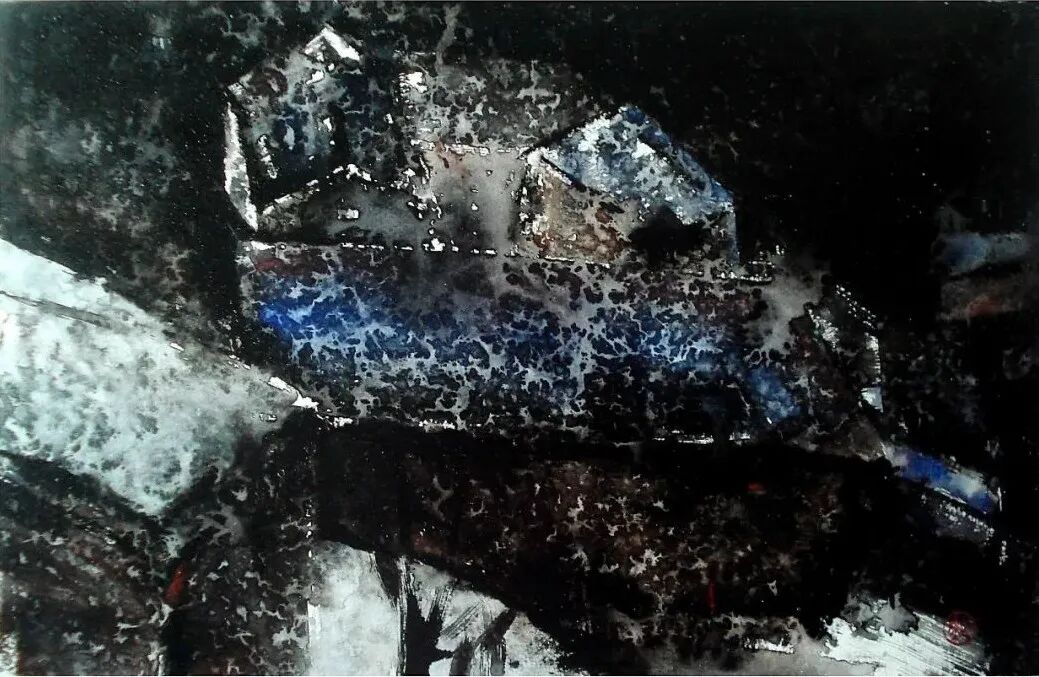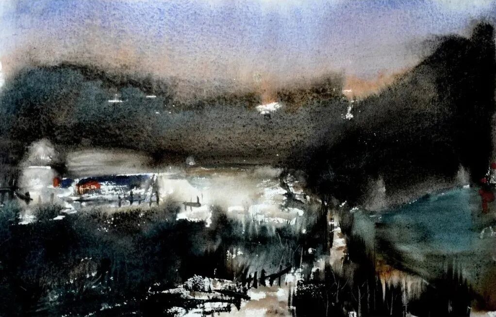 鲍军涛,《山中雪至》,2020年,纸本水彩,32厘米×47厘米![]()