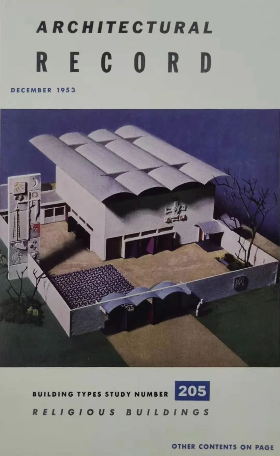 这意味着,霍夫曼参与钦博特项目之时,已与赛特在前两点上达成共识:第一,壁画应为建筑空间服务;第二,艺术家应与建筑师深度合作,并且和谐共处。如果项目按照他们的共识进行,霍夫曼定然会在共识基础上着手处理第三个难题,从而得出一套可融于建筑空间的壁画表达方式。但现实的状况却与此相反,霍夫曼与赛特的合作中更多的不是融合,而是对抗。其对抗产生的原因,在于对“壁画应以何种形式服务建筑空间”的不同理解。赛特在讨论艺术与建筑的关联时,将艺术分为三类:一是“与建筑共同形成整体”;二是“在建筑师的限定下发挥作用”;三是“保持自身的独立性,只是互有关联”。从赛特1953年为奥尔达斯港(Puerto Ordaz)教堂所做的“钟塔”(图2)设计可以看出,其对建筑壁画的要求属于第二种,即认为只有当艺术作品的形状、色彩、节奏等形式因素与建筑的外在观感保持一致时,才拥有服务建筑的能力。霍夫曼则相反,他追求的是绘画自身的独立表达,认为壁画只有成功表现出图画空间,才能和谐地服务于建筑,至于能否达到赛特意义上的统一,并不重要。霍夫曼为钦博特项目所绘的《马赛克十字架草稿》(Study for Mosaic Cross)(图3)以具象的十字架暗示天主教,满足赛特“象征”上的需求,让壁画成为“新城象征”(the symbol of the new city)。但为了实现绘画自身的价值——具体到此处就是表达“建筑节奏”(architectural rhythm)——霍夫曼不得不运用蒙德里安式“不断移动的色彩平面”,让画面布满富有动感且色彩鲜艳的形状。使整幅画不仅无法融于,甚至按照莱热早年的说法,要“统治”赛特的建筑空间。因此,从赛特的视角来看,霍夫曼言行并不一致,赛特希望其作品“作为片段为整体的运作服务”,霍夫曼则让壁画“脱离了建筑方块”而“独立运作”;从霍夫曼的视角看,赛特亦未践行“西班牙馆”那种绘画与建筑“保持自身的独立性,只是互有关联”的承诺。因为钦博特项目最终未能实际落地,霍夫曼的作品也没有入驻建筑空间。事实上,钦博特项目之后,赛特也未再寻求与其他艺术家的合作。